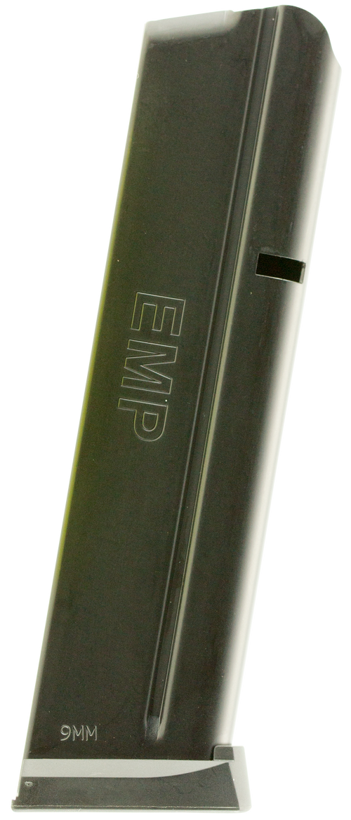 This Springfield Armory EMP magazine is chambered in 9mm Luger and holds 9 rounds. Constructed of blued steel, it is designed to fit the 4-inch standard frame length EMP 1911 models.