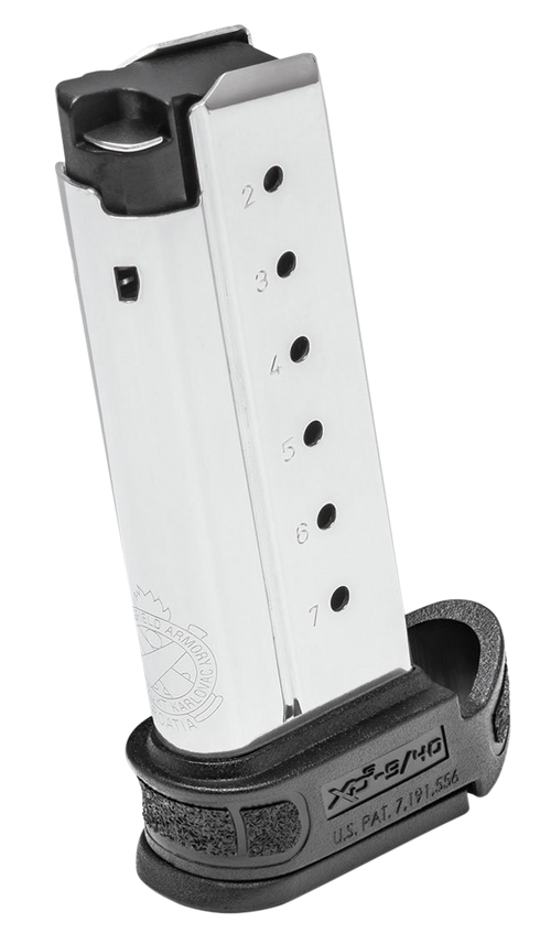7-round magazine for Springfield XD-S and XD-S Mod.2 9mm pistols in stainless steel construction. Features a hook floor plate for flush fit and ships with pinky extension. Compatible with 3.3" and 4.0" barrel models.