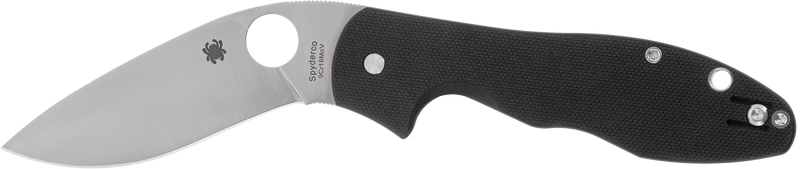 The Spyderco Retract is a folding knife featuring a 3.4" recurve blade made from 9Cr18MoV stainless steel with a satin finish and plain edge. It has a 7.79" overall length with a black G-10 handle and liner lock mechanism, designed for everyday carry and general cutting tasks.