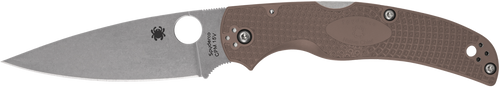 The Spyderco Native Chief Lightweight is a 4.02" folding knife featuring a CTS BD1N stainless steel blade with a plain edge and thumb hole opening mechanism. The lightweight design combines a stonewashed blade with a black textured FRN handle and includes a pocket clip for convenient carry.
