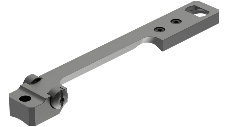 This is a Leupold Standard Base designed specifically for Savage 99 lever action rifles. The one-piece steel base features a matte black finish and measures 9.1" in length, allowing the rear ring to be secured by windage adjustment screws so the scope's internal adjustments can be reserved for precise sight-in. Shims can be used for gross elevation adjustment, preserving the scope's elevation adjustment for bullet drop compensation dial applications.