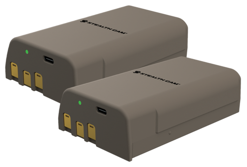 This 12-volt 5000 mAh lithium-ion rechargeable battery cartridge is designed to power Stealth Cam Flashback, Deceptor MAX, and Fusion MAX cellular trail cameras for extended field operation in extreme conditions. The battery recharges via included USB cable, eliminating the need for disposable AA batteries. Weatherproof construction ensures reliable performance in outdoor environments.