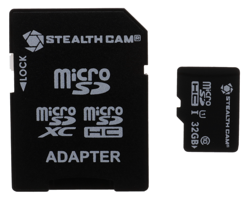 A 32GB Micro SD memory card compatible with Stealth Cam trail cameras and most digital cameras with SD or Micro SD card slots. This card stores pictures and video from your hunting and wildlife monitoring equipment. It comes with a manufacturer's 1-year limited warranty.