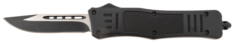 The Steel River Knives Spartan is a medium folding knife featuring a 3.25" drop point blade made from 440C stainless steel with a plain edge. The knife has a 4.50" black aluminum zinc alloy handle and weighs 6.50 oz, making it suitable for general cutting tasks and outdoor use.