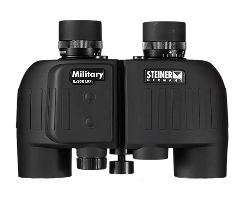 The Steiner M830r is a fixed 8x magnification binocular with 30mm objective lenses and a Mil Radian ranging reticle housed in a floating prism design. Features Sports-Auto focus, 20mm eye relief, multi-coated optics, and OD green Makrolon construction with rubber armor for durability in fog, water, and adverse weather conditions.