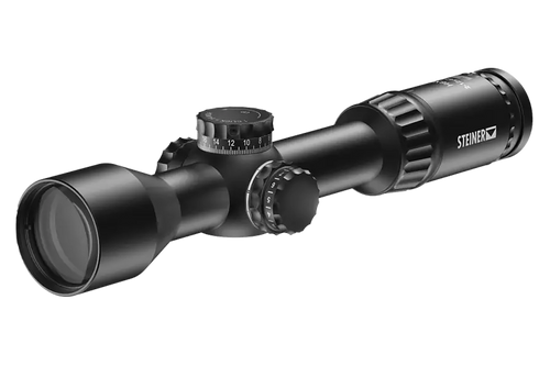 The Steiner H6Xi is a 3-18x magnification riflescope with a 50mm objective lens and 30mm main tube, designed for modern hunting applications. It features an illuminated Modern Hunter reticle, first focal plane design, and side focus parallax adjustment. This scope is fog proof, shockproof, and waterproof, weighing 27.4 oz with a 13.3-inch length and 9.4-3.3 inches of eye relief.