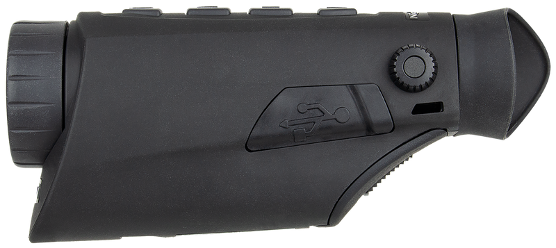This thermal monocular features a 1-4x magnification range with a 35mm objective lens and 400x300 12 micron thermal sensor delivering crisp images in complete darkness. The compact design weighs 12.34 oz and operates for up to 7 hours on a rechargeable 18650 Li-ion battery. The MAP reticle and direct controls provide intuitive operation for hunting and observation.