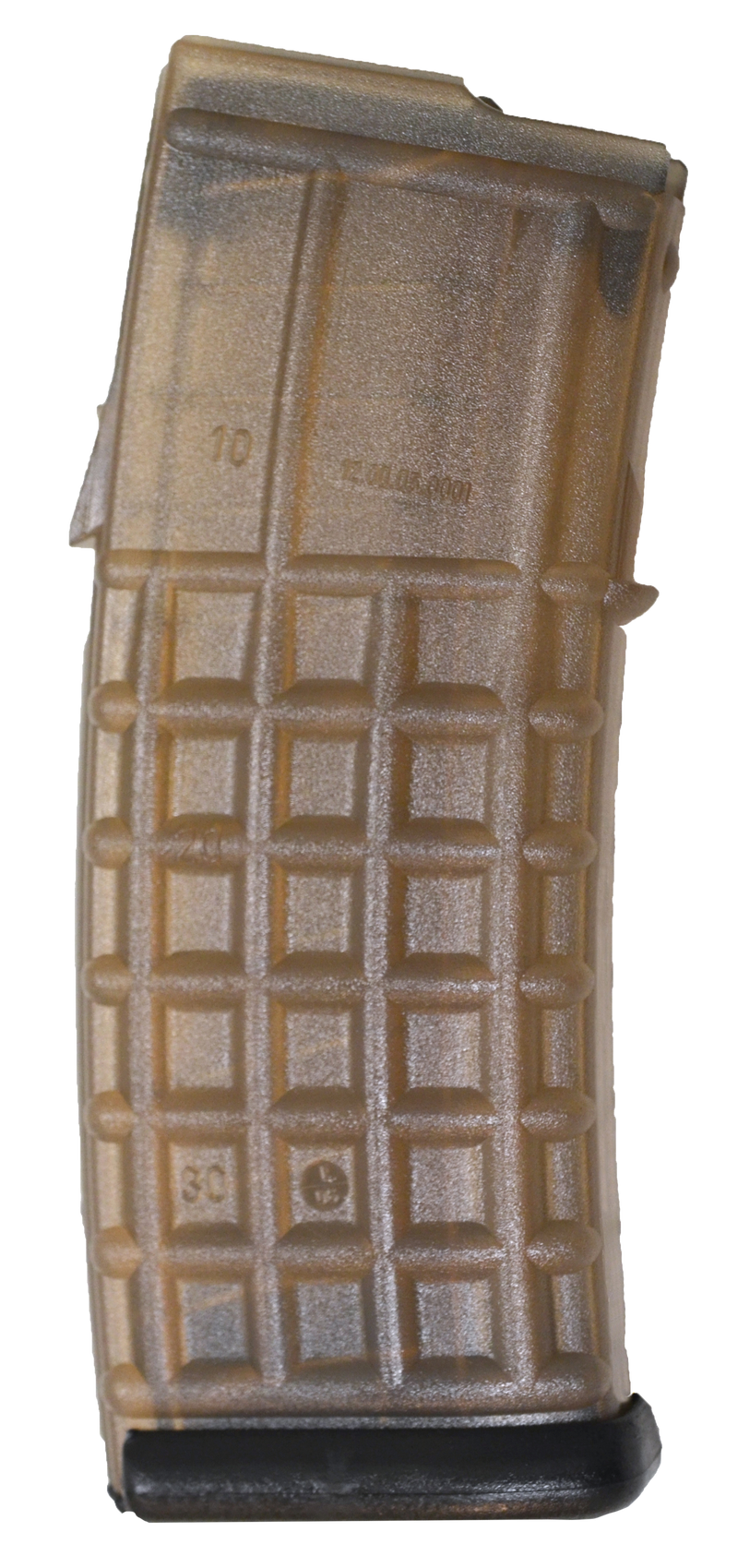 This Steyr Arms AUG A3 magazine holds 30 rounds of 5.56 NATO/.223 Remington ammunition and is designed to fit Steyr AUG rifles. Made from durable polymer with a clear body and black base for easy round count visibility.