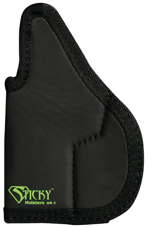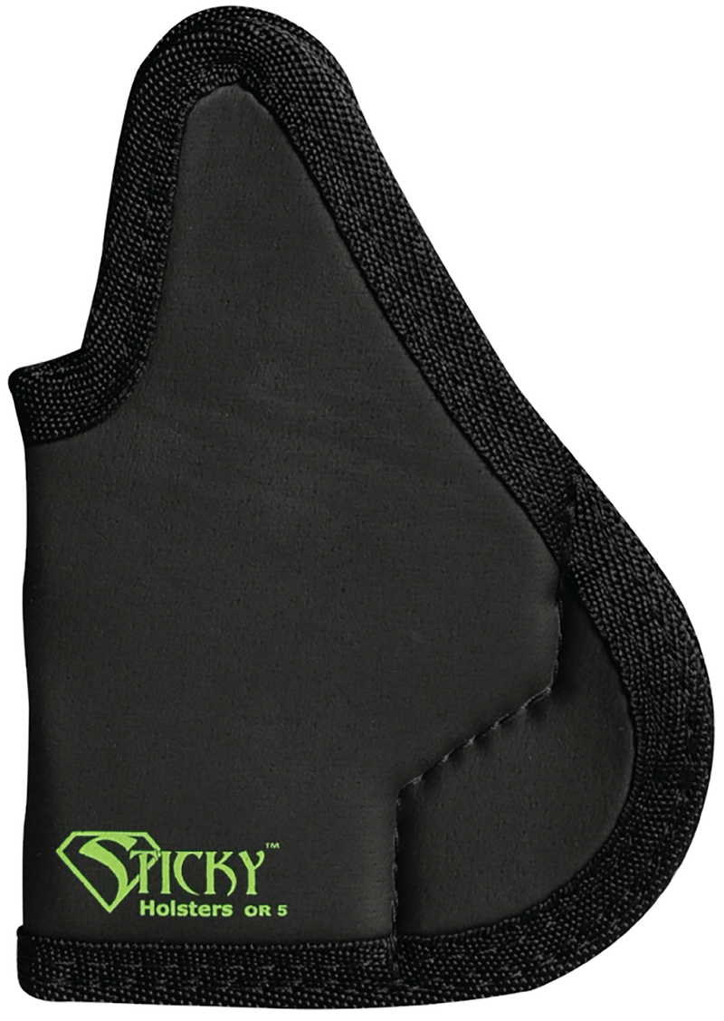 The Sticky Holsters OR-5 is an ambidextrous pocket holster designed to accommodate multiple compact firearms including Glock 42/43/43X, Sig Sauer P365, Springfield Hellcat, and S&W Shield models. Constructed from Cordura fabric with foam backing, it provides secure retention while maintaining a low-profile design suitable for everyday carry. This optics-ready holster fits a wide range of compact pistol setups.