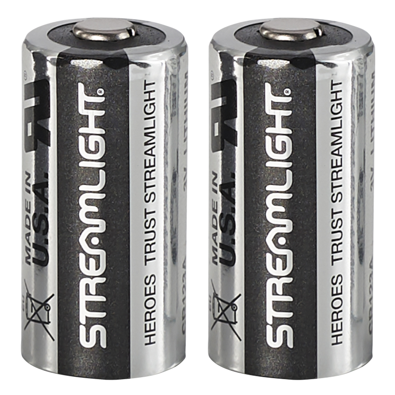 Pack of two 3-volt CR123A lithium batteries designed for use in Streamlight flashlights and other devices compatible with standard 123A batteries. These batteries offer reliable performance for tactical lights, digital cameras, and general-purpose applications requiring CR123A power sources.