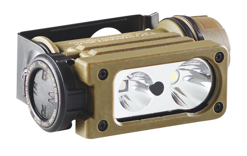 The Sidewinder Compact III is a compact tactical light designed for helmet mounting on military equipment. It features multiple lighting modes and is optimized for hands-free operation in tactical environments.