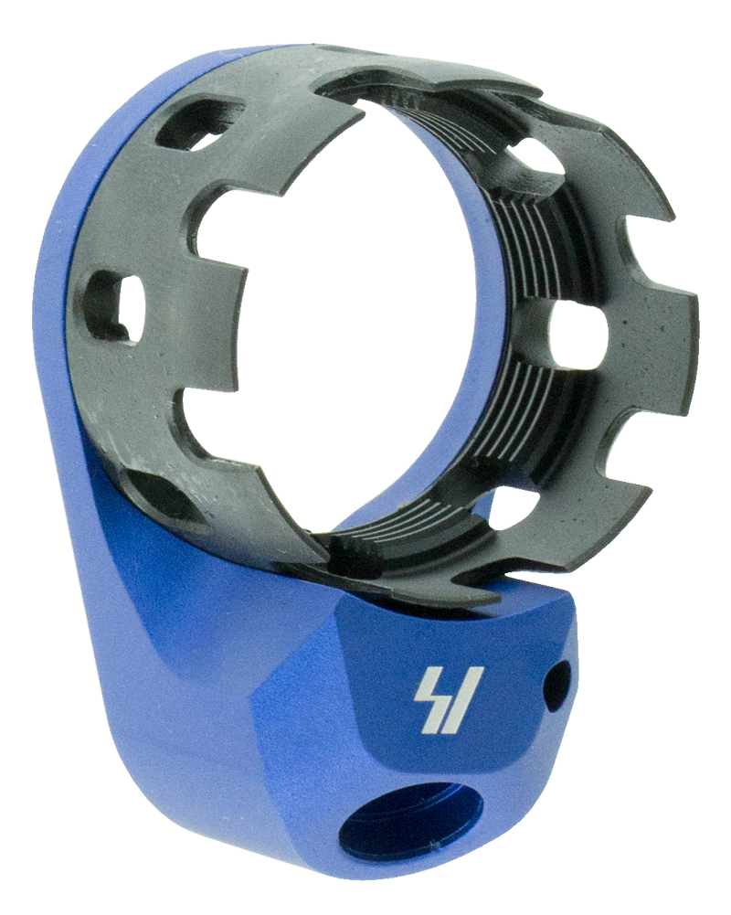 This Strike Industries castle nut and extended end plate assembly is designed for AR-pattern rifles and provides a secure interface for buffer tube attachment. Constructed from steel with a durable blue hardcoat anodized finish, it measures 5.1" length x 2.5" width x 2.0" height. Installation is straightforward on any AR-15 or AR-10 platform using standard tools.