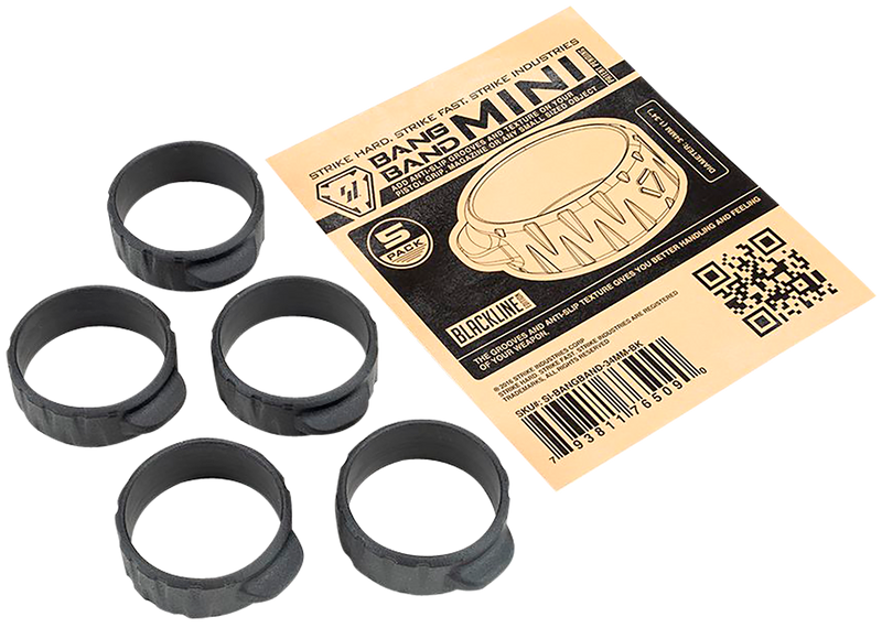 The Strike Industries Bang Band Mini is a 34mm rubber recoil pad designed to reduce firearm recoil and protect shooters from impact. Made of durable black rubber with dimensions of 5.8" x 4.3" x 0.7", this 5-pack offers universal compatibility across various rifle platforms. Simple slip-on installation makes it an easy upgrade for any shooter seeking added comfort and protection.