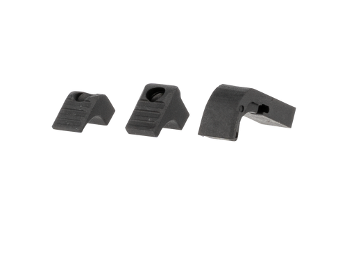 Strike Industries Modular Magazine Release for Glock Gen 4-5 models (17, 19, 19x, 22, 23, 26, 27, 31-35, 37-39, 45). Constructed from anodized aluminum with blue finish. Designed as a drop-in replacement to enhance ergonomics and magazine removal speed.