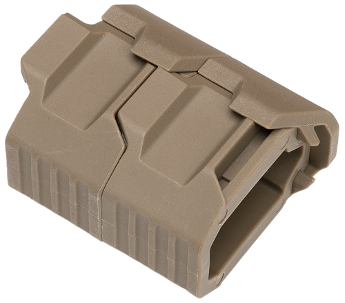 The Strike Industries Link Angled QD Mount is an aluminum stud adapter designed for quick-detach sling attachment to firearms. This Flat Dark Earth finished accessory features angled geometry to optimize sling positioning and reduce interference with controls. Dimensions are 5.9" length × 4.3" width × 0.8" height.