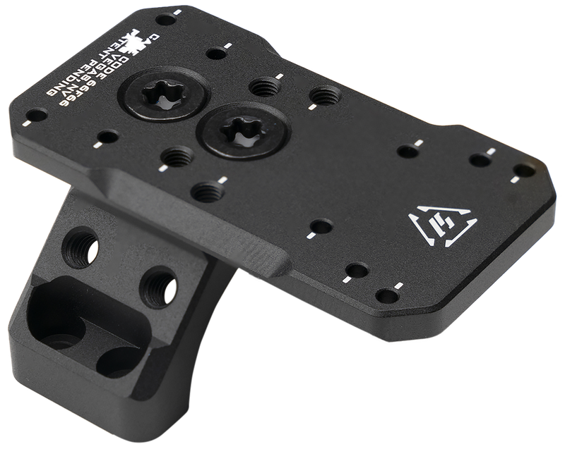 This is a multi-optic mount system consisting of 3 pieces designed for Picatinny rail and RMR footprint compatibility. Constructed from 6061 T-6 aluminum with black anodized finish, it provides a modular solution for mounting various optics configurations.