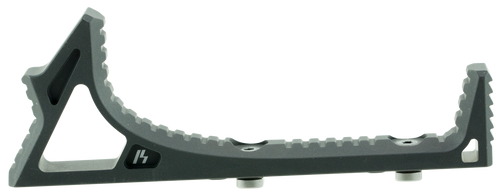 The Strike Industries Link Curved Foregrip is a blue aluminum grip designed for AR-platform rifles. Measuring 5.6" in length with a 2.2" width and 1.74" height, this foregrip provides a comfortable curved ergonomic design for tactical and sport shooting applications. The lightweight aluminum construction offers durability and precise weapon control.