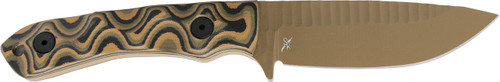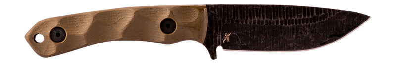 The Stroup GP2 is a fixed blade knife featuring a 3.5" drop point blade made from 1095 carbon steel with an acid-etched finish and an overall length of 7.75". The handle is constructed from G-10 material and includes a Kydex sheath with Tek Lok belt clip for secure carry and quick deployment.