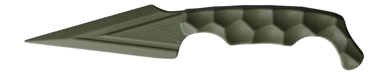 The Stroup Ultralite is a non-metallic fixed blade knife featuring a 3.75" dagger-style blade made from Zytel material with a plain edge and matte finish. At 7.5" overall length, it comes with a Kydex sheath for secure carry and storage. This olive drab green knife is designed for general utility cutting tasks and outdoor use.