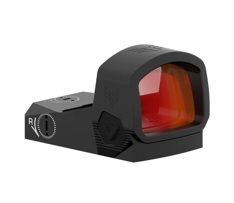 The Swampfox Liberty II is a 1x24 red dot sight with RMR footprint compatibility and a multi-reticle design offering four easy-to-switch reticle options. It features 10 illumination settings, unlimited eye relief, and Shake N' Wake auto on/off functionality to preserve battery life. Constructed from 7075-T6 aluminum with IPX-7 waterproofing and parallax-free performance at 33 yards.