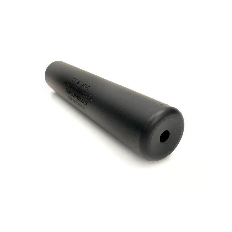 The SA22Ti is a lightweight titanium suppressor designed for .22 LR firearms with 1/2-28 threads, weighing just 4.75 oz while delivering approximately 42 dB of sound reduction. Full-auto rated with a Grade 9 titanium tube and stainless steel blast chamber, it measures 5.7" in length and provides excellent recoil reduction for its weight class. Direct-thread attachment requires no additional muzzle device.
