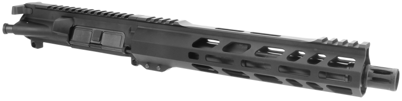 Complete AR-15 pistol upper assembly in .300 Blackout with a 10" black nitride barrel and M-LOK handguard. Features a black anodized 7075-T6 aluminum receiver, includes bolt carrier group, and is optic ready with no iron sights. This is a drop-in upper that requires only a compatible lower receiver to complete the build.