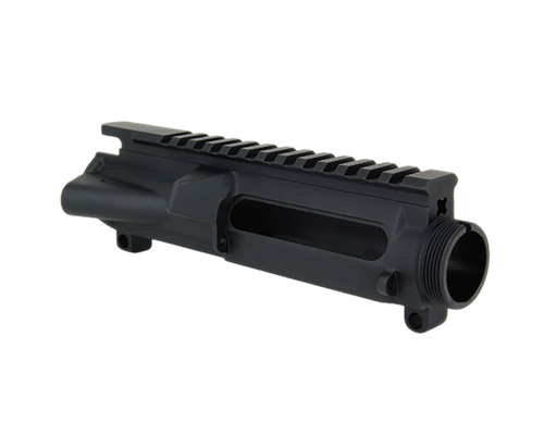 Stripped upper receiver machined from forged 7075 T6 aluminum, compatible with AR-15 platforms. Features a slick side design and requires assembly with bolt carrier group, charging handle, and other components. Ready for customization with your choice of internal parts.