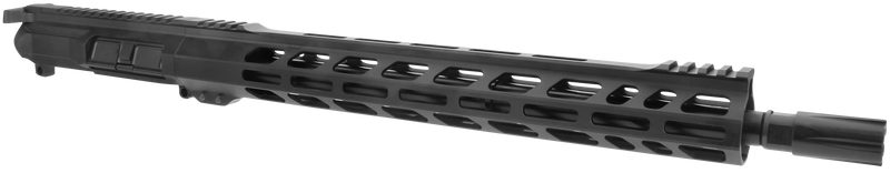 Complete AR-platform upper assembly chambered in 45 ACP with a 16" black nitride barrel and black anodized 7075-T6 aluminum receiver. Features an M-LOK handguard and includes bolt carrier group; optic-ready with no iron sights included.