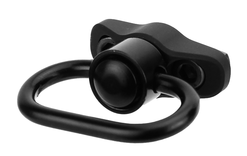 This TacFire sling mount features a quick-detach (QD) attachment point compatible with M-LOK slots on modern rifles and carbines. It includes an integrated QD sling swivel for rapid sling attachment and detachment. The black push-button design provides secure, tool-free installation and removal.