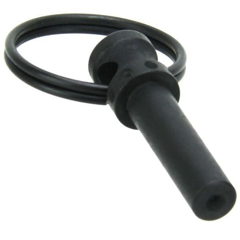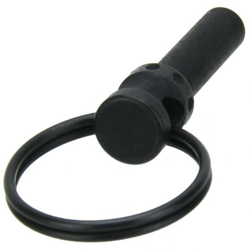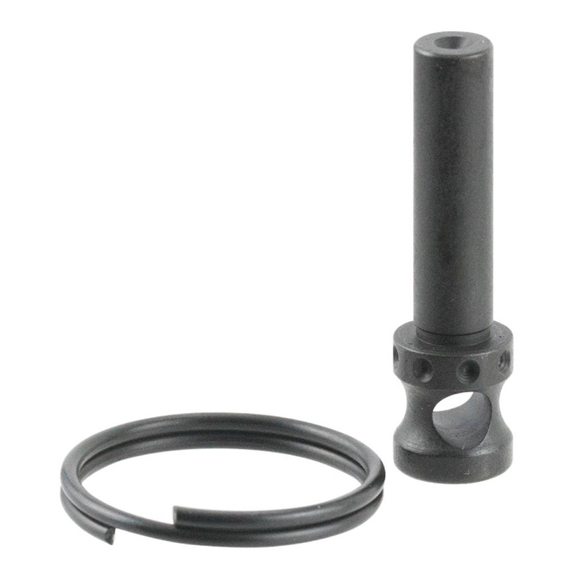 Steel takedown pin designed for AR-15 lower receivers with extended knurled end and paracord attachment port. USA-made component featuring black nitride finish for corrosion resistance. Simple press-fit installation on AR-15 platform rifles.