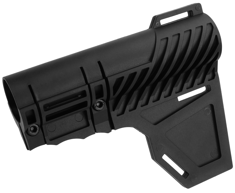 The TacFire SP34 is a black polymer stabilizer brace designed for AR-pistol platforms. This accessory measures 8.0" length × 5.6" width × 1.9" height and provides improved control and stability for ar-pistol configurations.