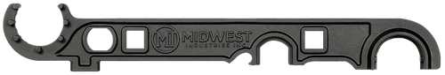 This armorer's stock wrench is designed for AR-15 rifle maintenance and assembly, featuring a steel construction with rubber handle for improved grip and control. The wrench measures 9.6" in length with a 2.7" width, providing the proper leverage and fit for stock installation and removal tasks.