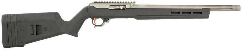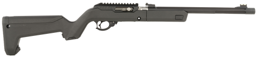 Semi-auto rimfire rifle chambered in .22 LR with a 16.5" gunmetal gray target crown barrel and 10+1 capacity. Features an ambidextrous bolt design, integrated 15 MOA Picatinny rail, threaded muzzle for suppressors, stainless steel bolt and charging handle, and Black Magpul X-22 Hunter stock. Weighs 4.80 lbs with overall length of 35 inches.