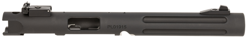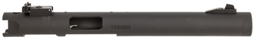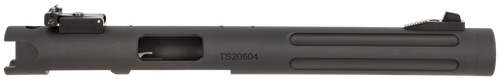 Replacement barrel and receiver assembly for Ruger Mark IV and Mark IV 22/45 pistols, featuring a 6" fluted and threaded chrome moly steel barrel with matte black anodized finish. Designed to reduce weight and improve accuracy, this suppressor-ready barrel installs easily on existing frames without gunsmith assistance. Includes blade ramp front and adjustable rear sights.