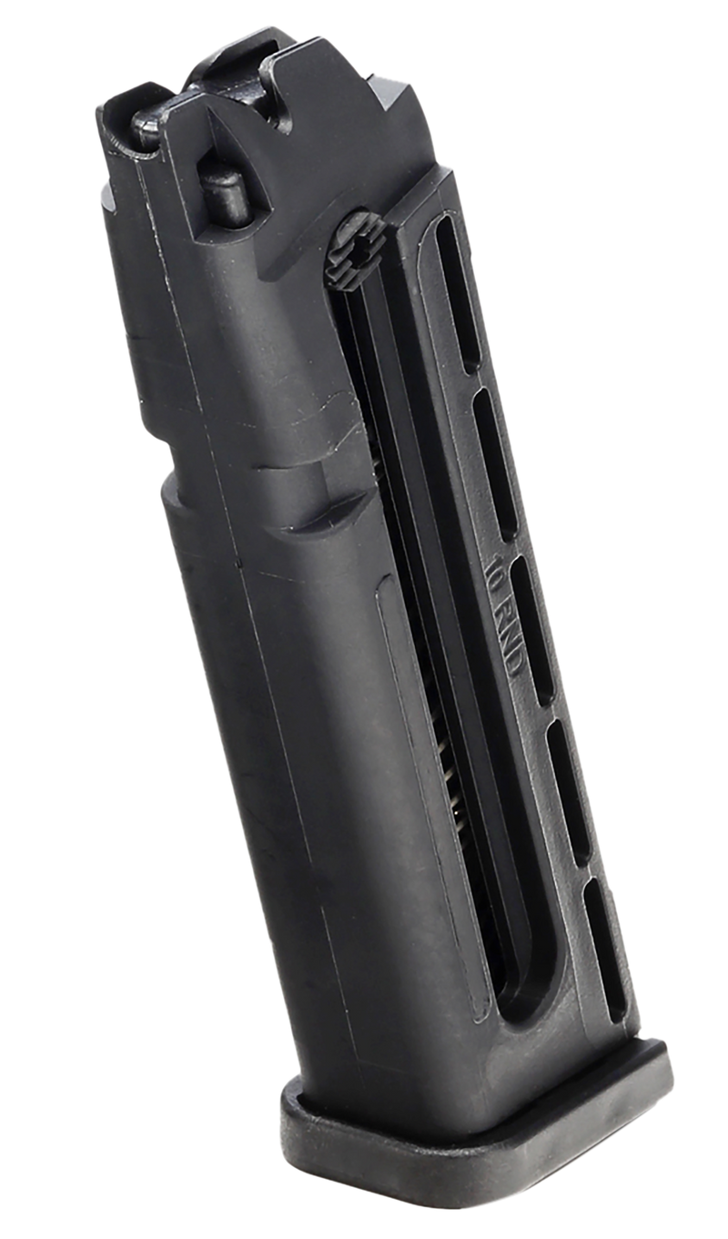 This 10-round magazine is designed for the Tactical Solutions TSG-22 .22 LR conversion kit and is compatible with Glock 17/19/22/23 platforms. Constructed from durable black polymer material with dimensions of 10.2" length, 4.0" width, and 1.2" height.