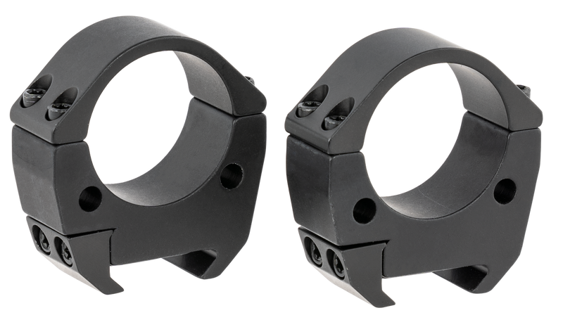 Two-piece scope rings designed for 30mm tubes and Picatinny rail systems. Machined from aircraft-grade aluminum alloy with black anodized finish and 0 MOA offset. Medium height rings provide 0.990" clearance for proper scope mounting on modern sporting rifles.