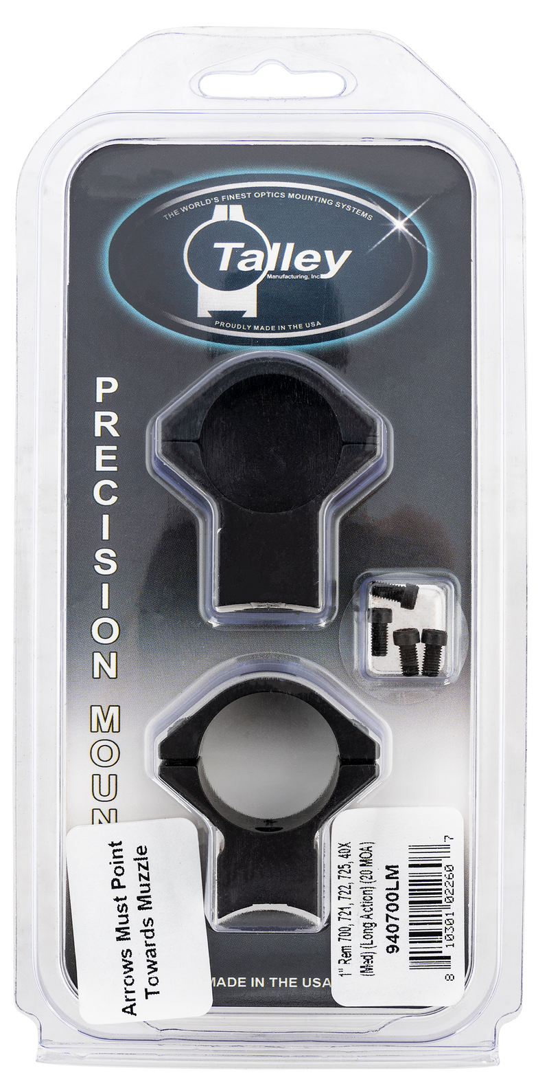 Talley Lightweight Alloy Scope Mount Combo 1" Medium Rings Long Action 20 MOA, Black - 940700LM