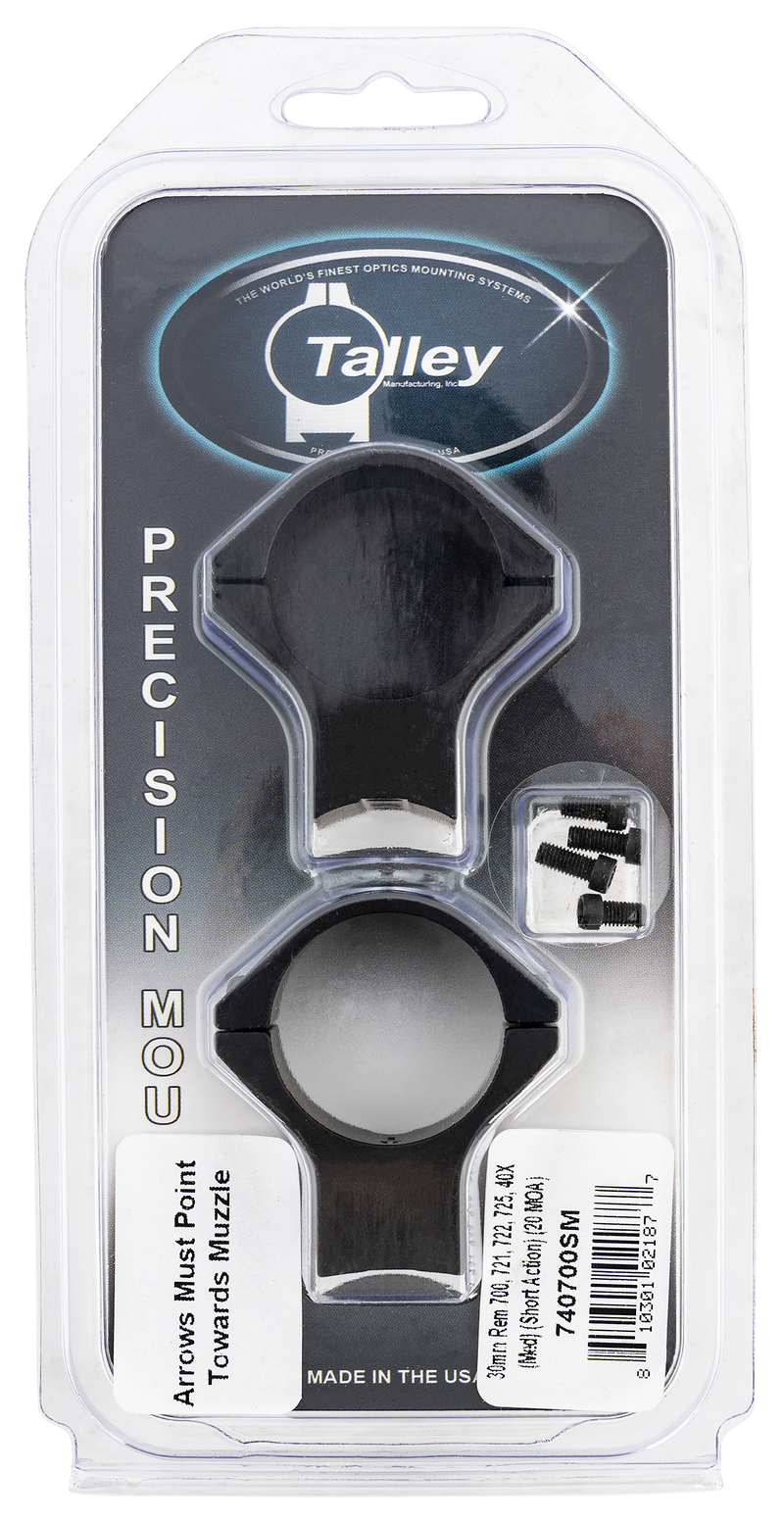 Talley Lightweight Alloy Scope Mount Combo, 30mm Tube, Remington 700 Short Action, Medium Rings, 20 MOA, Black Anodized - 740700SM
