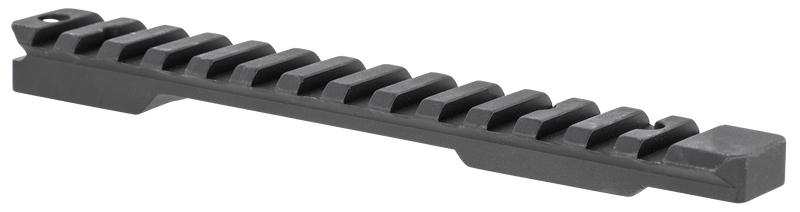 This is a 1-piece Picatinny rail base designed for Remington 700 short action rifles with a 20 MOA elevation angle. The black anodized aluminum mount features an integrated anti-cant indicator and mounts directly to the receiver, measuring 8.9" in length with a 0.473" height. Rings are not included with this base.