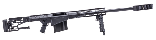 The Auto Ordnance TAO50 is a bolt-action rifle chambered in .416 Barrett with a 29" barrel and 10+1 capacity. It features a Magpul PRS Gen 3 collapsible/folding stock, Timney AR-style trigger, and includes an Accu-Tac bipod for stability. The rifle weighs 25.5 lbs with an overall length of 61" and uses Barrett M107A1 magazines.
