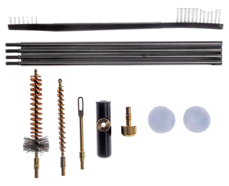This 12-piece cleaning kit is designed specifically for AR platform rifles chambered in .223 Remington/5.56mm NATO. The kit includes essential cleaning components housed in a compact black case measuring 9.4" x 7.7" x 1.3". Ideal for field maintenance and regular gun care.