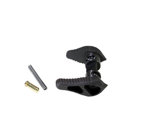 Ambidextrous safety selector designed for AR platform firearms, manufactured from 8620 steel with a black finish. Dimensions are 3.9" length x 1.3" width x 1.3" height. This accessory provides reliable manual safety engagement for tactical and sporting applications.