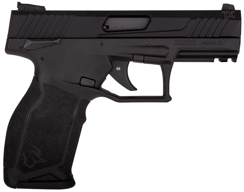 The Taurus TX22 is a striker-fired semi-auto pistol chambered in .22 LR with a 4.1" barrel and 10+1 capacity. It features a polymer frame with Picatinny rail, adjustable white dot sights, and a precision-tuned trigger system designed for accuracy and reliability. This full-size rimfire pistol weighs 17.3 oz and comes with a non-threaded barrel.