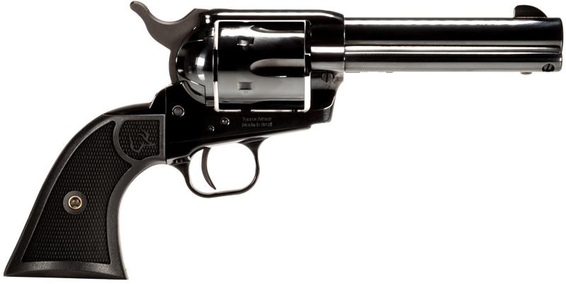 The Taurus Deputy is a single-action revolver chambered in .357 Magnum with a 4.75" polished black steel barrel and 6-round capacity. It features a steel frame, black polymer grip, fixed sights, and transfer bar safety for secure carry. Weighs approximately 40.5 oz with an overall length of 10.25".