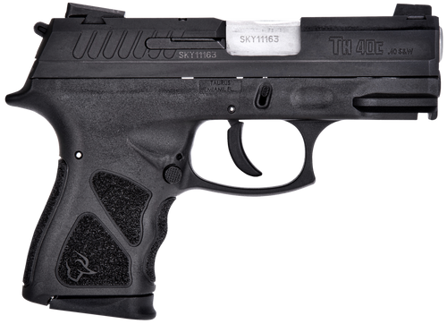 The Taurus TH9C is a compact 9mm Luger semi-automatic pistol featuring a 3.54" barrel, double/single action trigger, and manual thumb safety. It includes Novak drift-adjustable sights, a polymer frame with Picatinny rail, and comes with two magazines (13rd and 17rd capacity). This pistol weighs 25 oz and measures 6.85" overall length, making it suitable for personal protection and sport shooting.