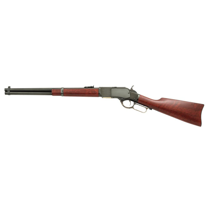 The Taylor's & Company 1873 Carbine is a lever-action rifle chambered in .357 Mag with a 19" barrel and 10-round capacity. This lightweight carbine features a walnut stock, blued steel frame, fixed rear ladder sights, and barrel band, making it ideal for hunting, sport shooting, or younger shooters seeking a maneuverable platform.
