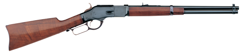 Taylors & Company 1873 Carbine in 357 Magnum features a lever action with a 19" blued round barrel and color case hardened receiver. This full-size carbine holds 10+1 rounds, weighs 7.48 lbs, and includes a walnut stock with traditional blade front and ladder rear sights.