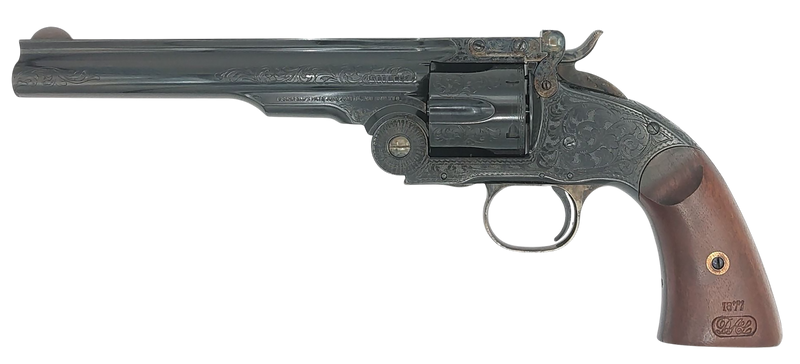 Taylors & Company 550652 Top Break Schofield 44-40 Win Caliber with 7" Barrel, 6rd Capacity Cylinder, Overall Blued Engraved Finish Steel & Walnut Grip