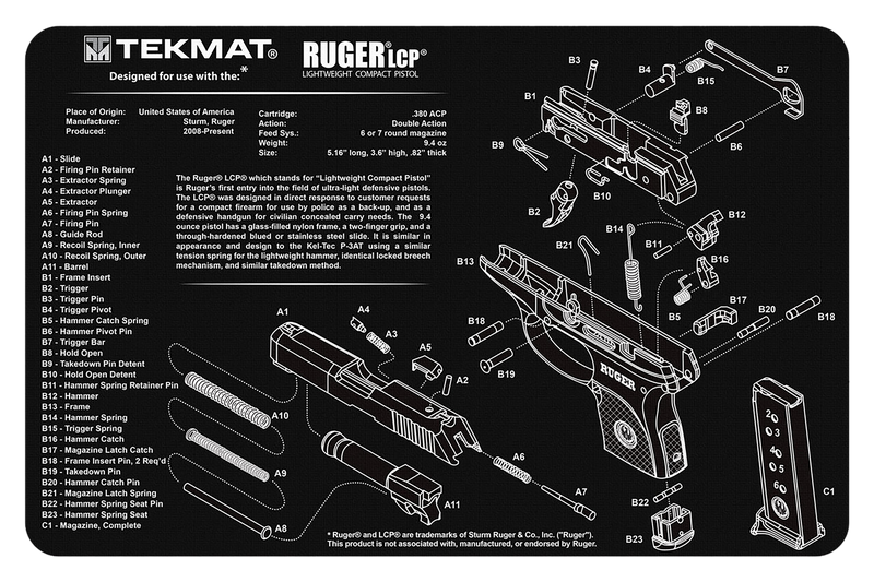TekMat Ruger LCP Cleaning Mat 11" x 17" Black/White - TEKR17RUGERLCP