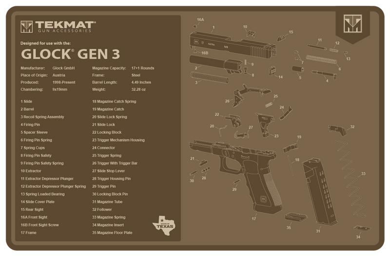 TekMat Glock Gen 3 Cleaning Mat Flat Dark Earth - TEKR17GLOCKG3FDE